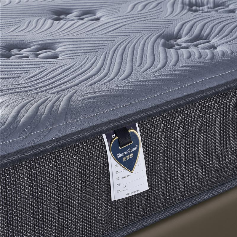 Ang aming mataas na kalidad na High Density Foam At Spring Hybrid Mattress ay nagtatampok ng mga eleganteng sulok na label na nagpapaganda ng produkto pagkilala at pakiramdam ng kalidad, lalo na mahalaga para sa mga branded na kuwarto ng hotel at showroom display.