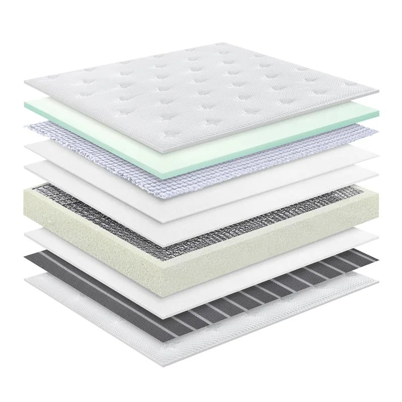 2. Multi-Layer Scientific Formula: Ang Ice Silk Knitted Fabric Mattress ay gumagamit ng maingat na piniling mga materyales at sumasailalim sa mahigpit na teknikal na kontrol, na naglalaman ng maselang craftsmanship. Nagtatampok ito ng ice silk knitted fabric, high-density rebound foam, breathable 3D layer, kanya-kanyang pocketed spring, malusog na cotton felt, non-woven fabric, soft foam, at breathable na materyales.